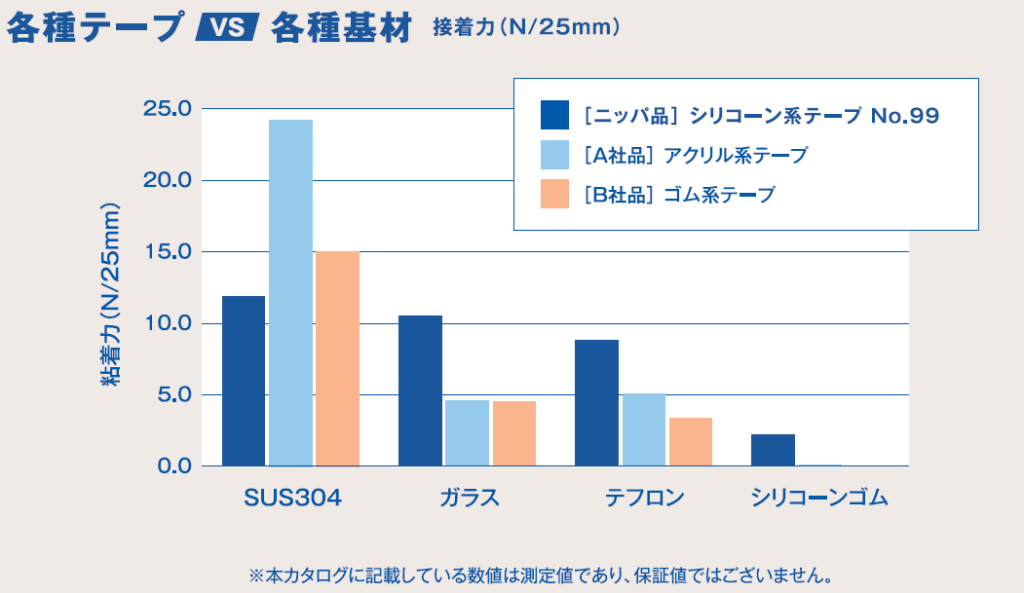 ※粘着力測定条件:25mm幅 対SUS 304、剥離角度180°、速度300mm/minにて測定